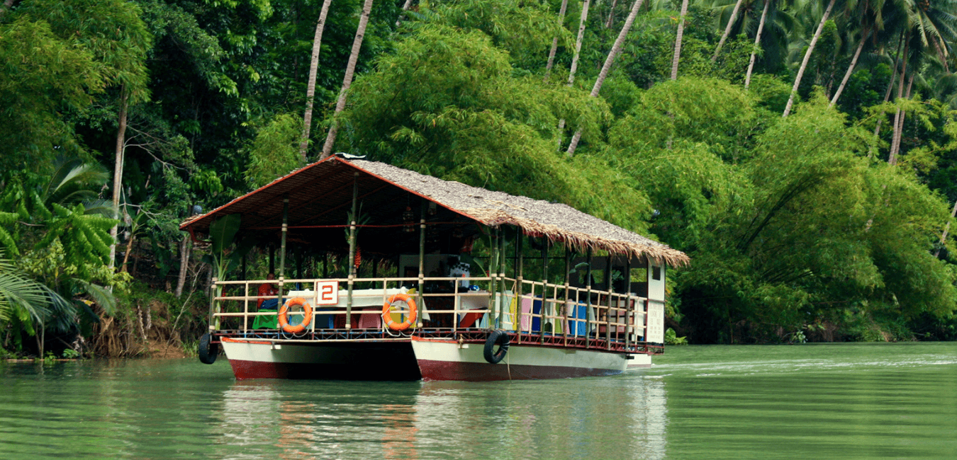 One of the popular destinations in Bohol is The Loboc River where one can get on board a floating restaurant and enjoy the Loboc River cruise with a buffet meal. This includes a short cultural show by the local community.